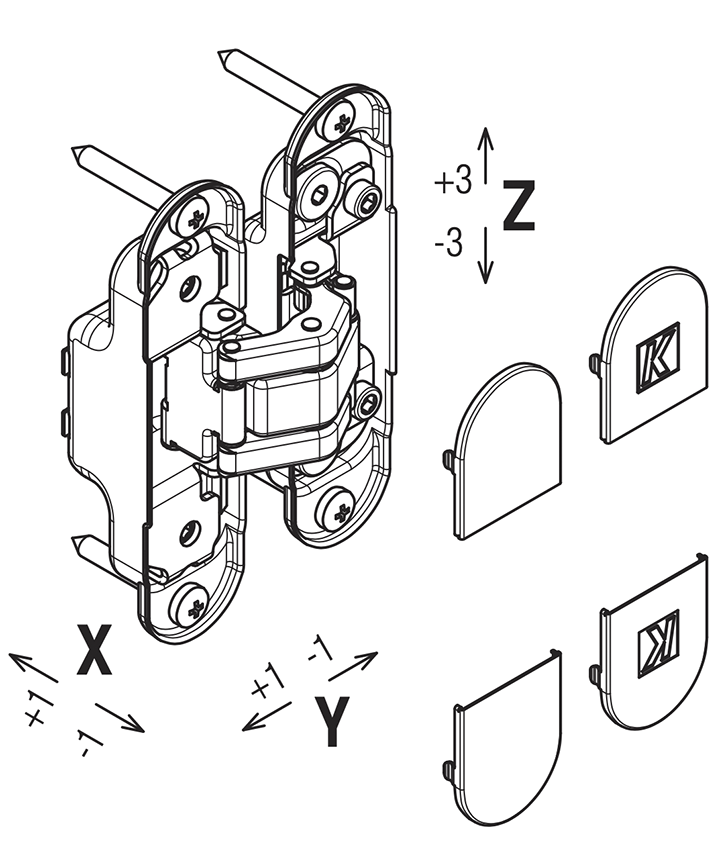 Регулировка скрытых петель ATOMIKA возможна в трех измерениях, за что петли получили название «3D-петли для дверей». Очень удобно, что регулировочные винты подкручиваются единым шестигранным ключом 4 мм прямо на месте, без съёма полотна. Кроме удобства установки, петли ATOMIKA очень надежны в эксплуатации за счет высокой прочности самого материала, из которого сделана петля, а также благодаря износостойкой втулке в шарнире. Они универсальные для правого и левого открывания. Как и все петли Krona Koblenz серия ATOMIKA не требует смазки в течение всего срока службы благодаря вставкам из самосмазывающегося износостойкого композита, которые предохраняют оси от истирания.